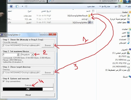 شرح بالصور طريقة التقسيم من خلال برنامج sqldumpsplitv :